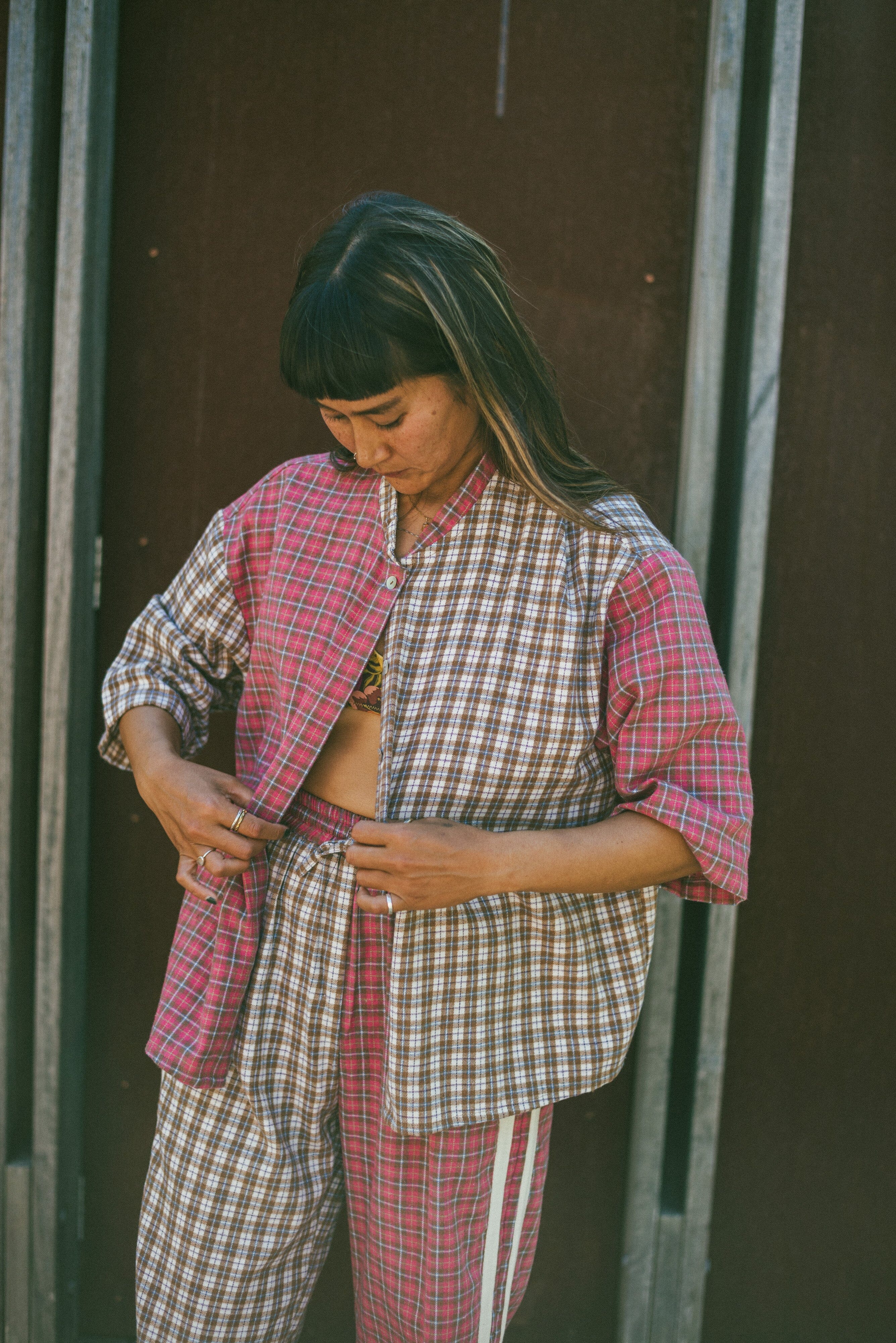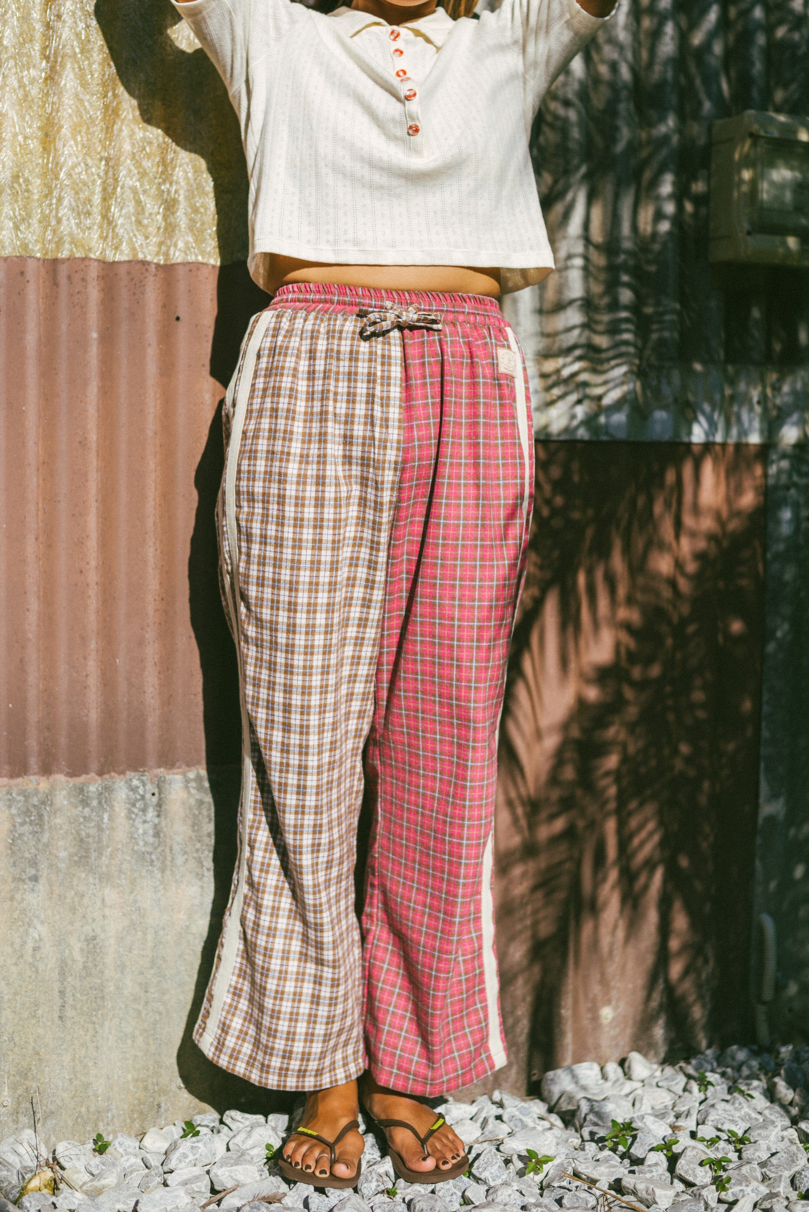 Flannel Flare Pants - Strawberry Milk