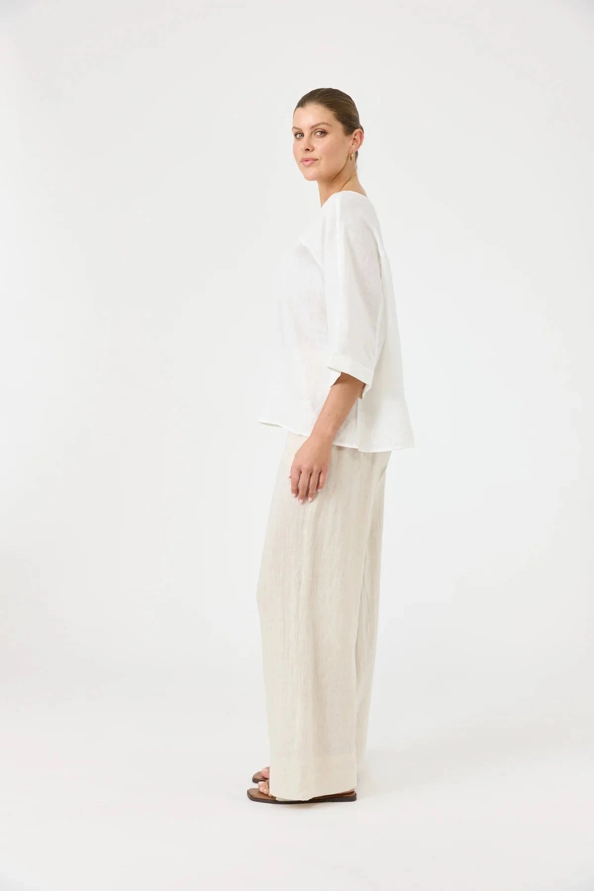 A best-selling style, and for good reason. Features a crew neckline, wide 3/4 cuffed sleeves, and subtle seam detailing above the chest. Crafted from 100% linen for breathable comfort.