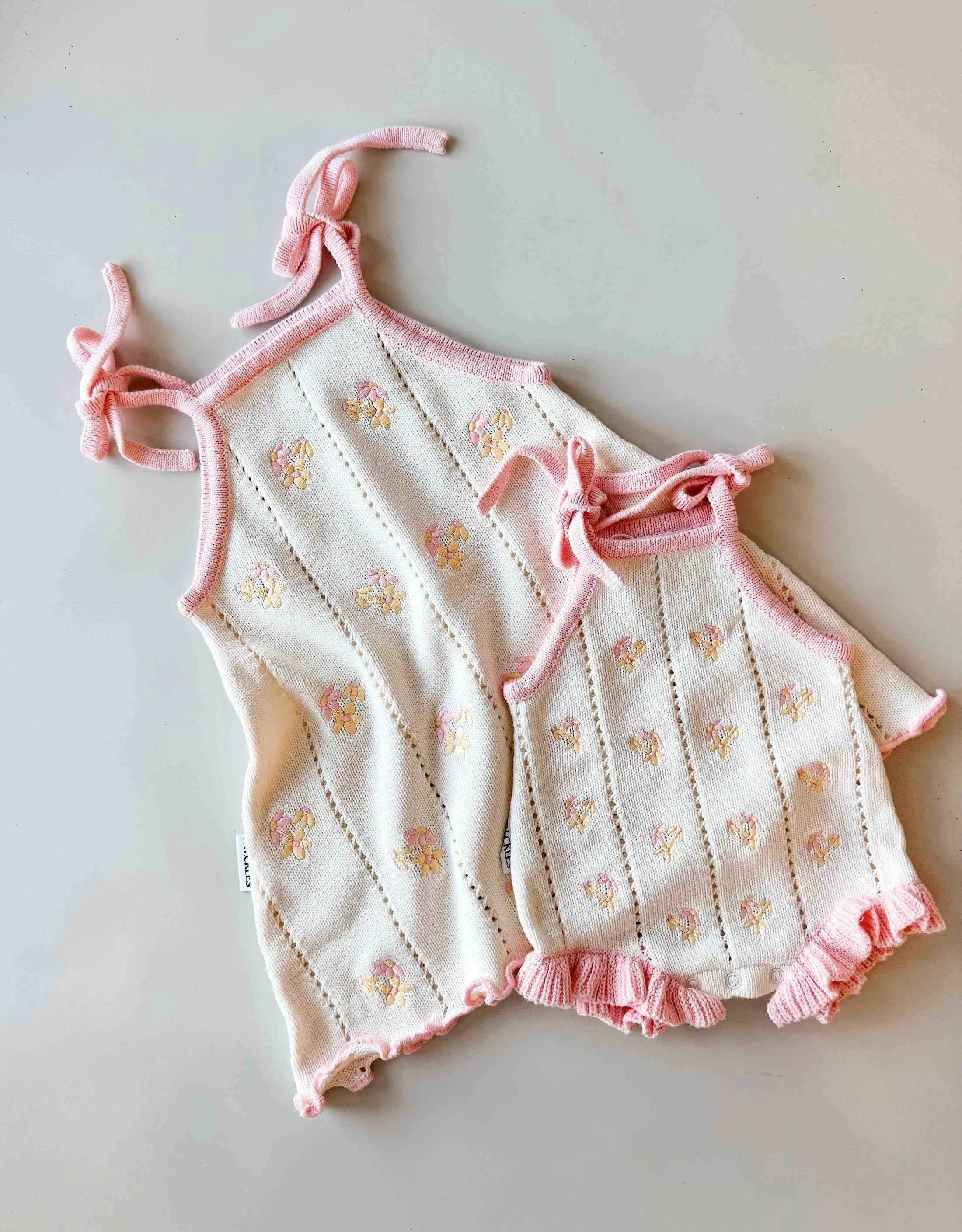 Meet the dress that refuses to be outgrown! This stunning dress in a pointelle knit in cream with pink trim features the cutest yellow and pink Cosmos embroidery on the front. Made from 100% cotton, it layers like a dream and adjusts at the shoulders, so it goes from dress to tunic as your little one grows. Perfect for spring strolls, summer adventures, or cosy autumn days. One dress, infinite outfit possibilities!