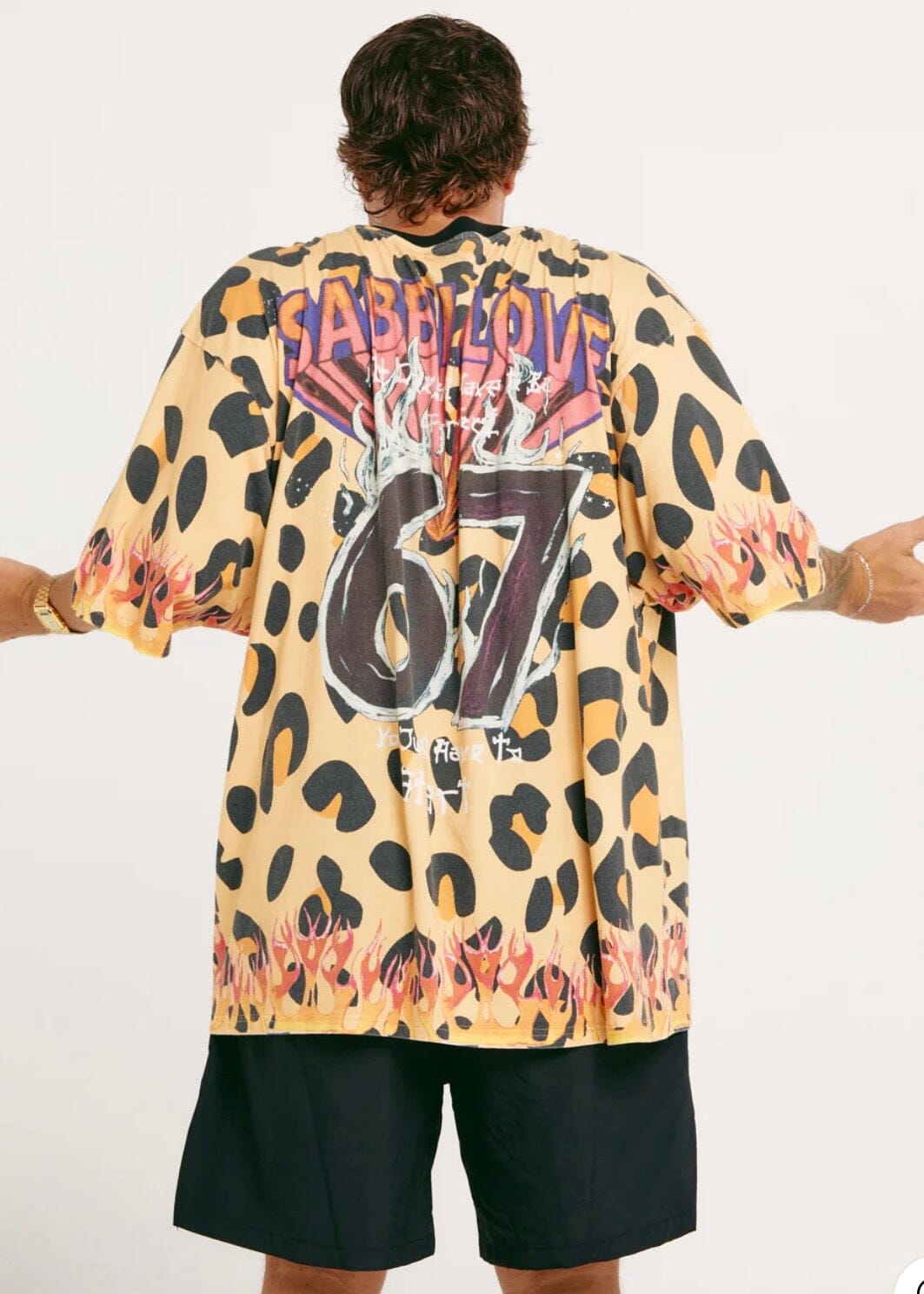 Front or back, every angle goes hard. Featuring the cosmic Sabbi love graphic up front and 67 artwork blasting across the back, this tee delivers the perfect mix of rock-n-roll grit and Sabbi mischief.